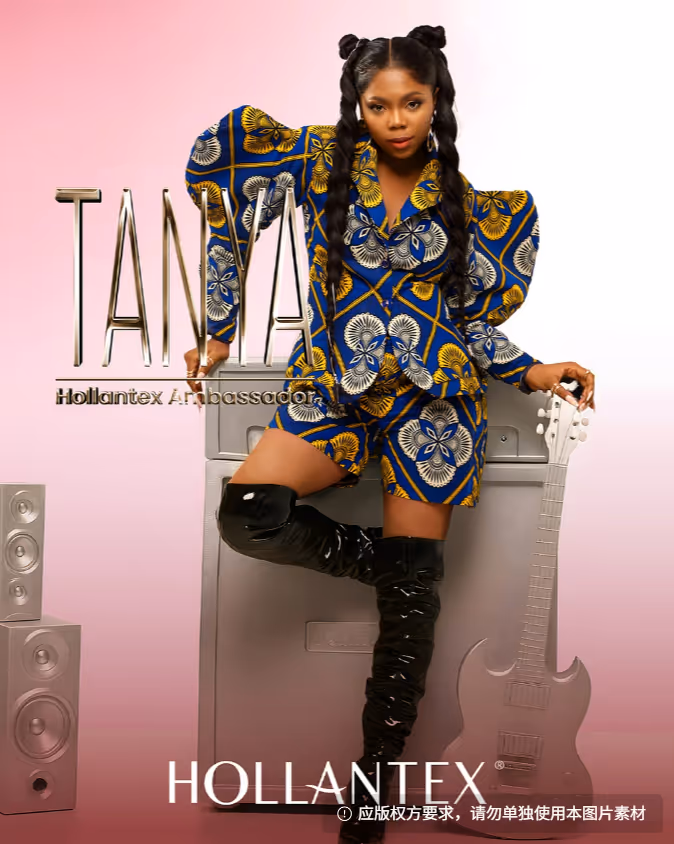 En tant qu’ambassadrice de Hollantex, Tanya représente l’énergie, la confiance et l’authenticité qui définissent la mode africaine. À travers sa musique et son style, elle partage les mêmes valeurs que Hollantex — la couleur, la culture et la confiance.